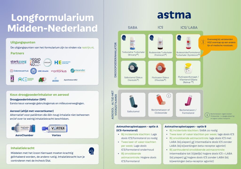 De werkgroep heeft in de afgelopen periode de uitgangspunten van het longformularium herzien. Ook is de longformulariumkaart vernieuwd: een handig hulpmiddel waarmee de zorgverleners eenvoudig de meest passende kunnen inhalator kunnen kiezen om zo gezamenlijk de kwaliteit van de longzorg te verbeteren.